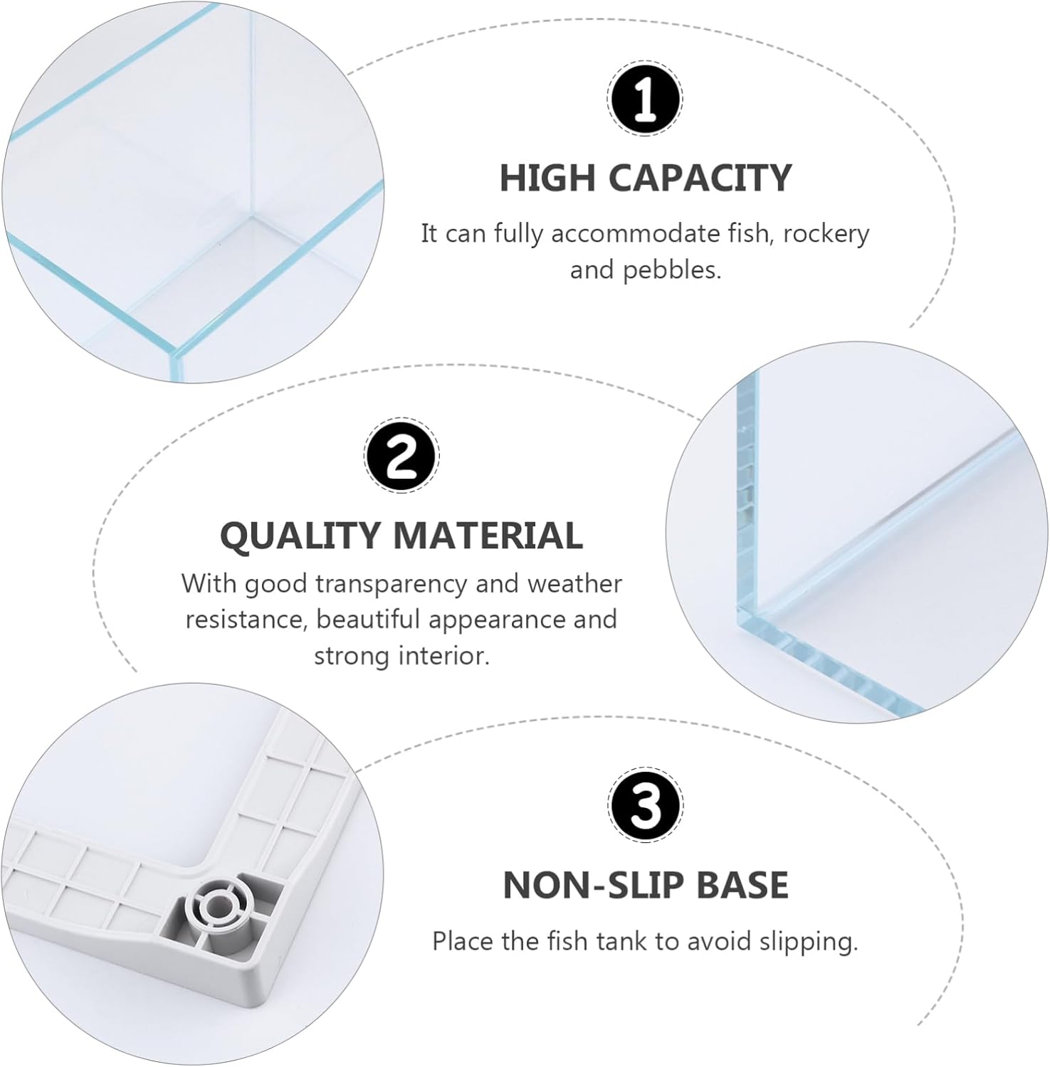 Package Include 1 tankGoods InformationHome Decoration - Size: 23x16x20cm/ 9.Fish Tank Cube - Made of durable glass, can be used long time.Aquarium Supplies - Also suitable for tarantulas, , crickets, snails, Mantis and other reptile .Mini Aquarium 29x7.Glass Fish don't even feel the presence of glass, the fish is like swimming in the air.Fish Container 04x6.Transparent Fish Tank - The small fish tank would be make you more happy and relaxed even in day or at night.Glass Cube 86inch.Glass Terrarium - The large opening is convenient for fish feeding. Want a clearer and more beautiful watching experience? Our aquarium can help you . - 360 degree full view visually completely to observe the behavior of pets easily. Aquarium Right angle pad and bottom pad for non-slip and scratch protection, of the aquarium and safety! Features - ColorTransparent- Material: Glass
