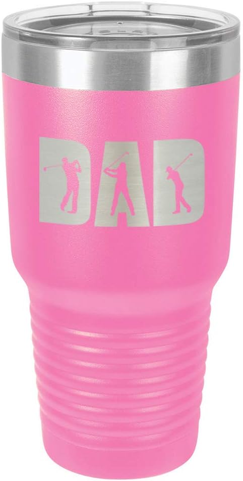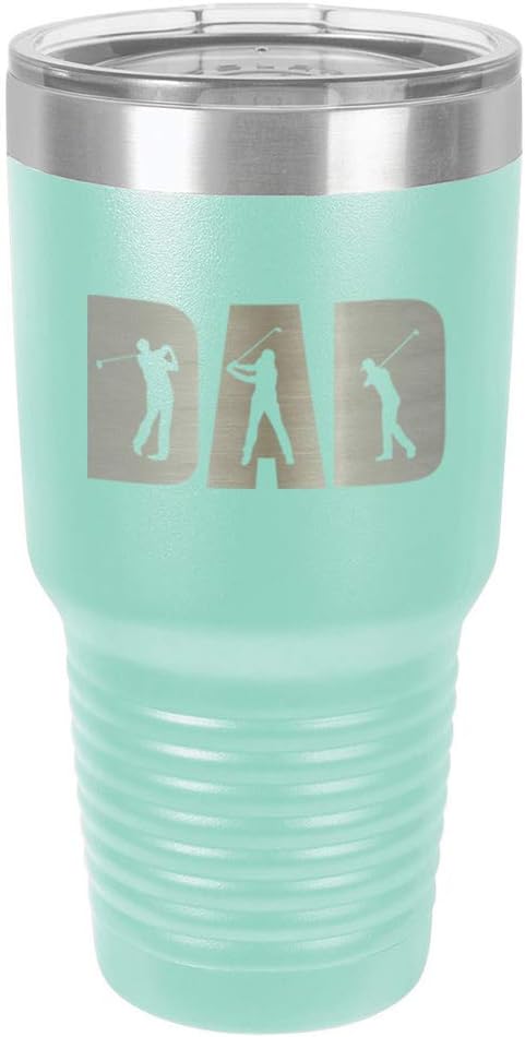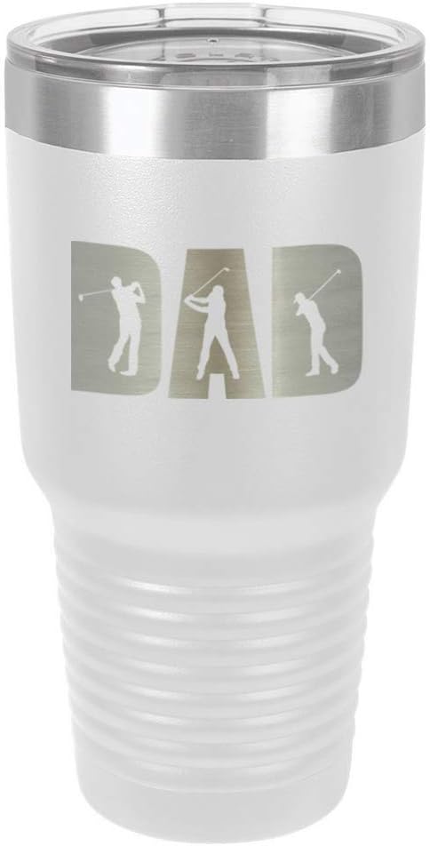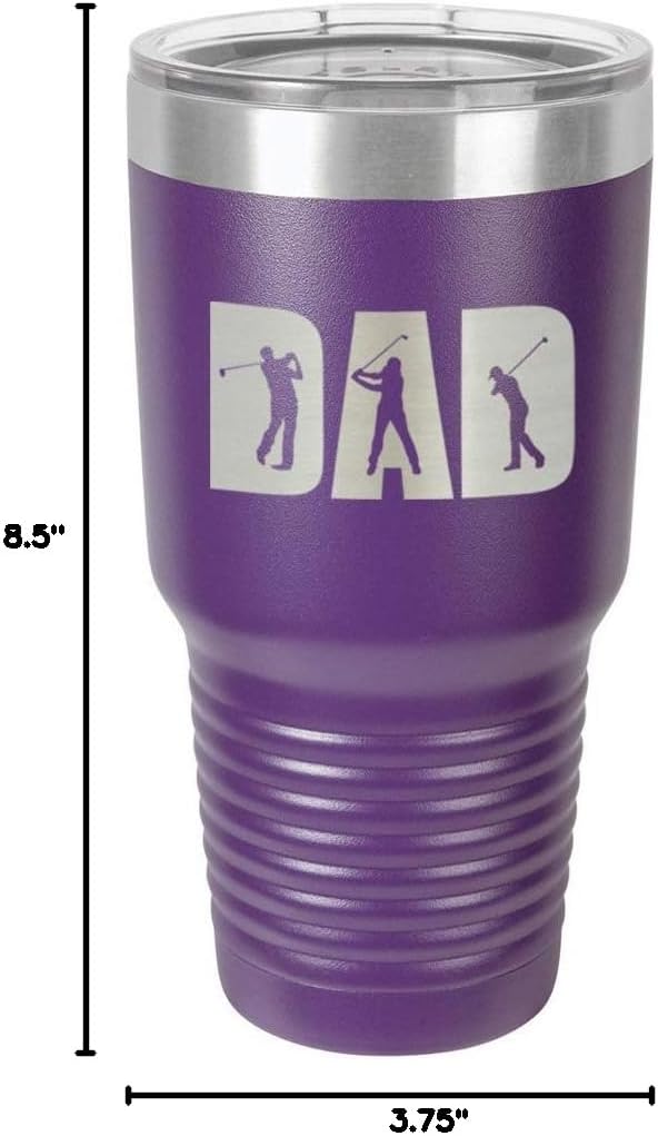 • PREMIUM QUALITY ENGRAVED TUMBLER: This 30 oz Golf Dad Knockout Engraved Tumbler has a colored powder coating and our laser engraver removes this powder coating, exposing the high quality stainless steel and comes with a clear lid. THIS IS NOT A DECAL! Ideal for hot & cold beverages. A great gift for birthdays, Christmas, family occasions, vacations, beach, pool or travel.
